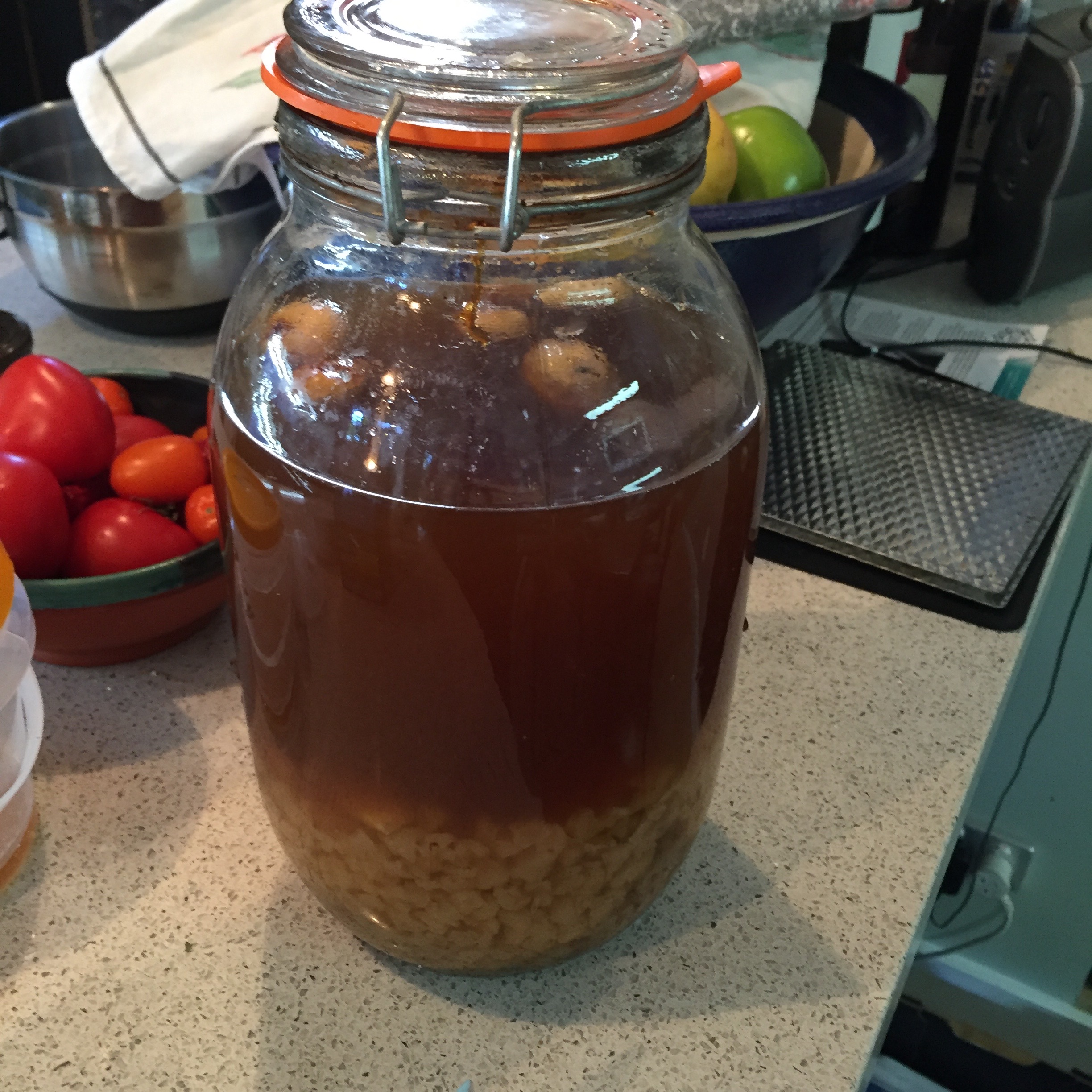 If you’re local and you’d like a lot of kefir grains to get started let me know. They breed prolifically, and most weeks I would have a quantity to give away. Below is how I do it, for a lovely, lively brew made in my particular kitchen. I have been told water kefir has a very small amount of alcohol from the fermentation process, less than 1%, but I don’t independently know if that’s true or not.