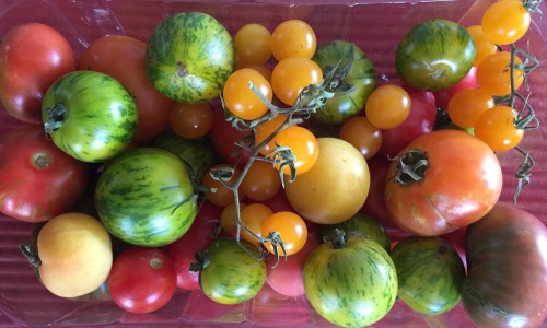 Lots of small tomatoes, cut and tossed with a bit of salt and a couple of tablespoons of EV olive oil, and left for a few minutes