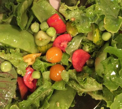 Our evening meal was a magnificent combination of fresh produce, almost all of it straight from someone’s garden. The best consequence of all that freshness is that it was delicious – such a pleasure to eat, it’s easy to forget how good it is for you.