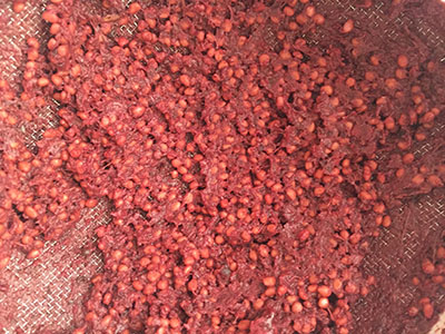 Push it all through a big metal sieve until all you have left is the seeds and any skins or stringy bits.