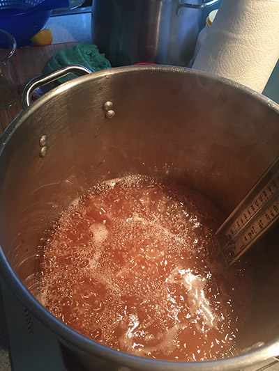 If not, then you’re looking for the moment when the liquid is boiling so rapidly it threatens to boil over. You want to see it heading for the top of the pot. Either with a thermometer or not, from this point you’ll have to monitor it and adjust the cooking temperature as necessary so it doesn’t boil over, but still keeps boiling very hard.