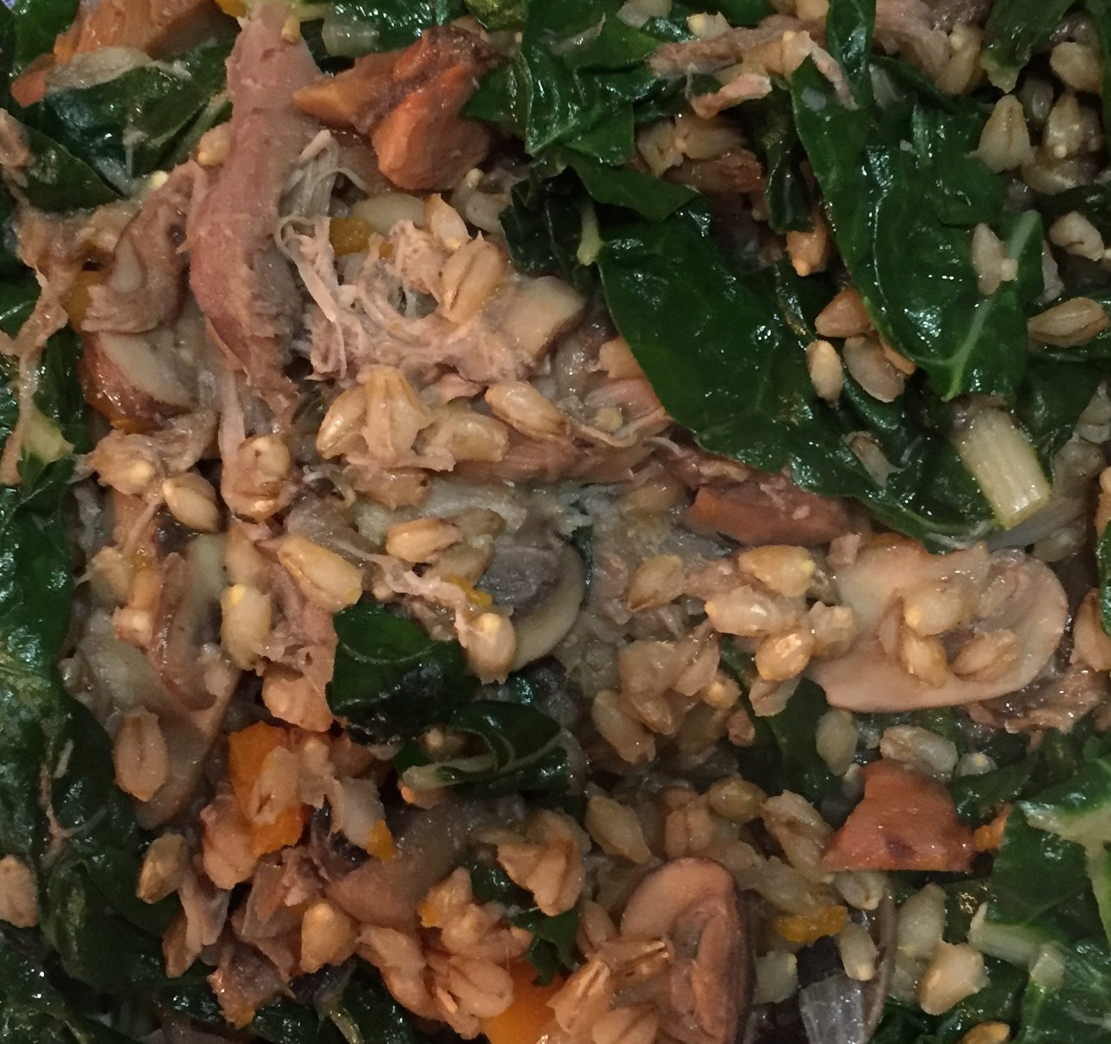 Duck, mushroom and silver beet blend beautifully with the barley.