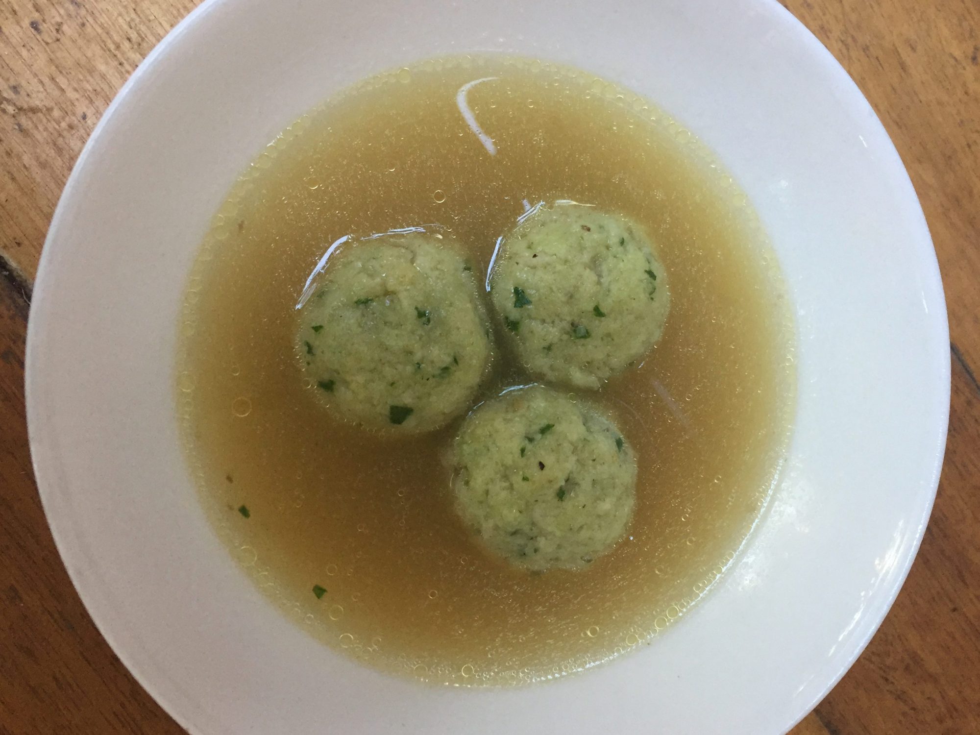 The dumplings are often served with a chicken broth, but for me the beef bone broth is perfect.