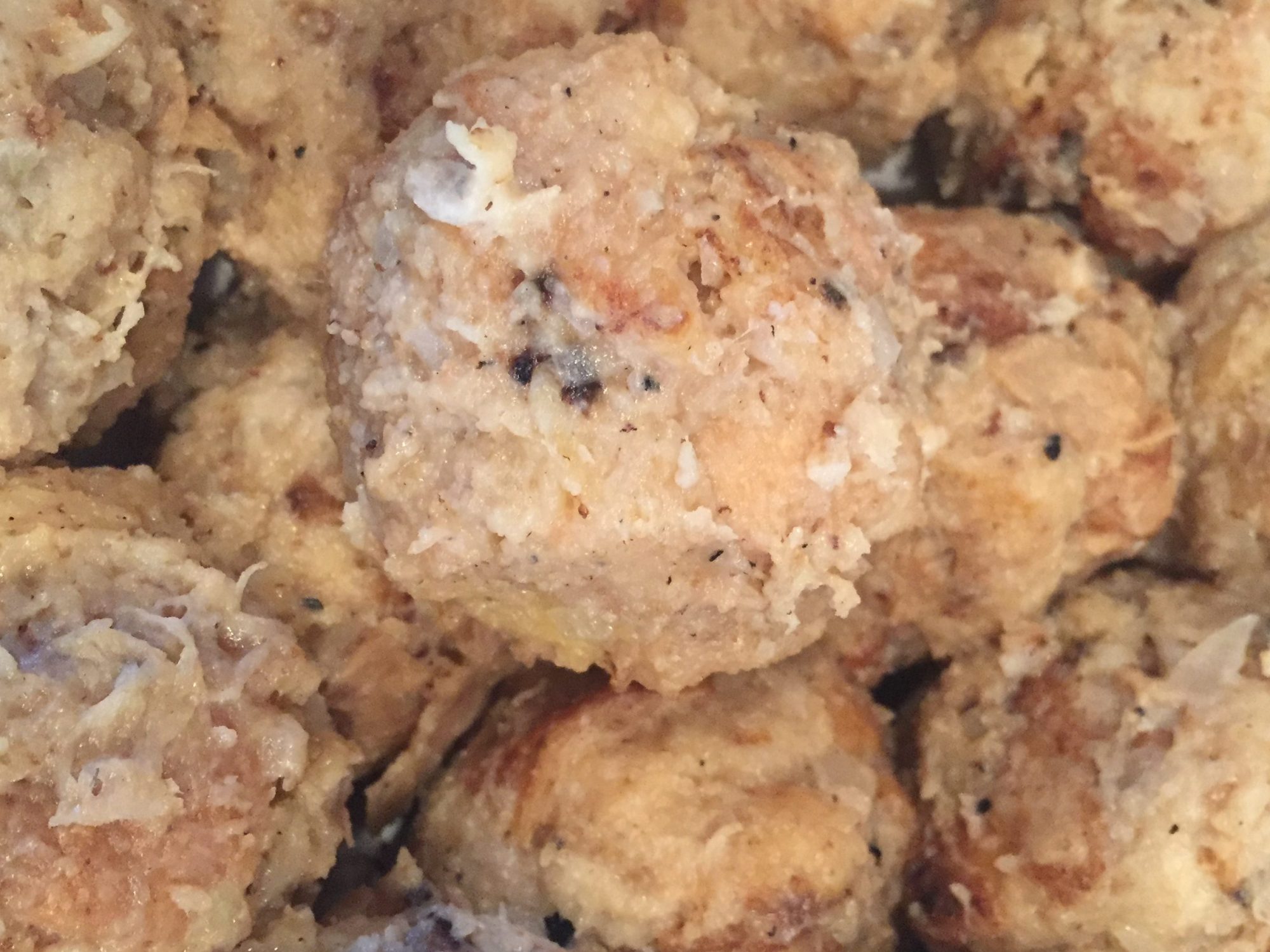 Using your hands, shape the mix into balls. You may have to work the soaked bread quite hard.
