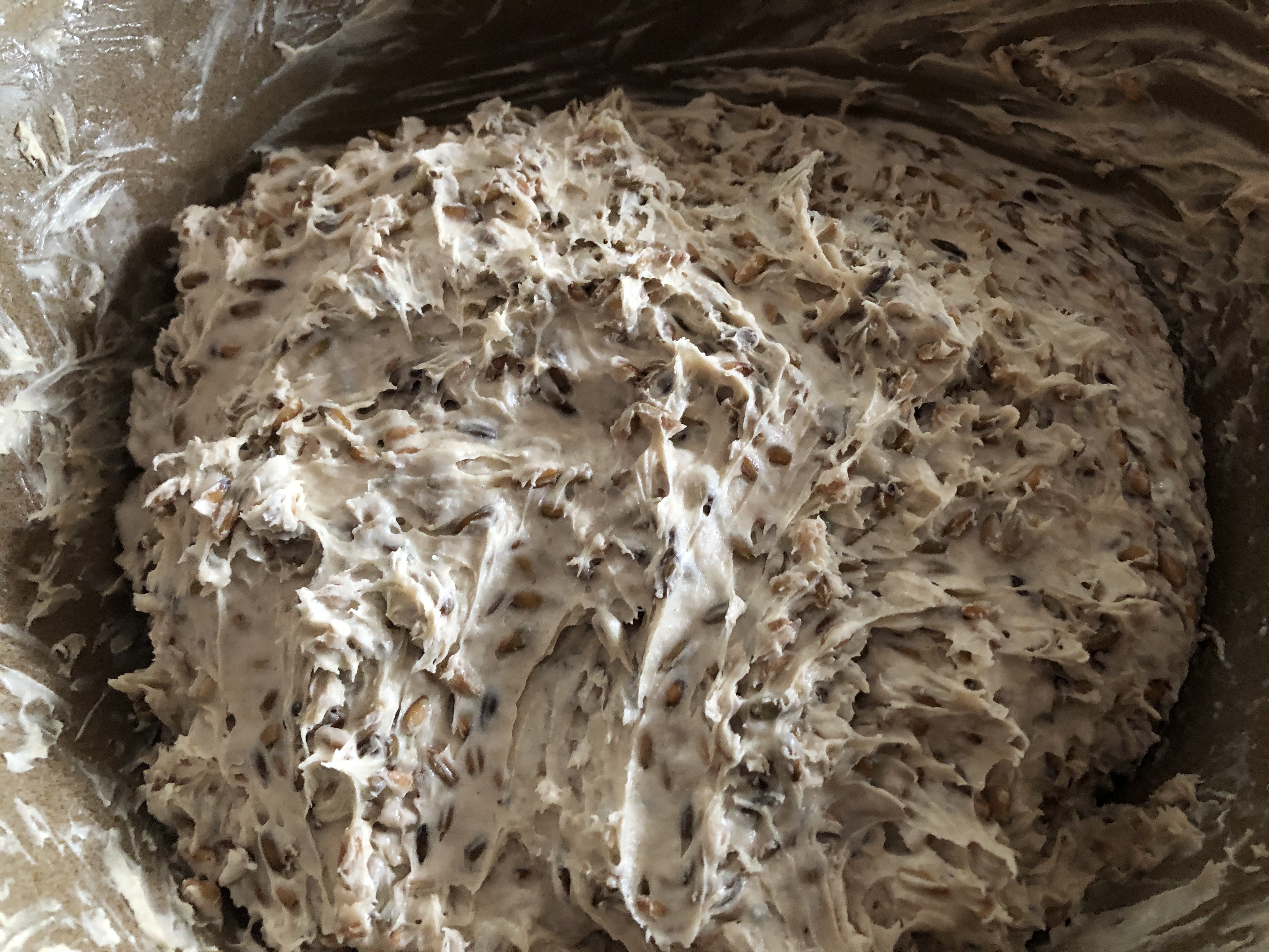 I’ve experimented quite a bit with wholegrain breads, since the kind you buy in shops here usually have a small scattering of very hard and crunchy grains, and that’s not the point at all.
