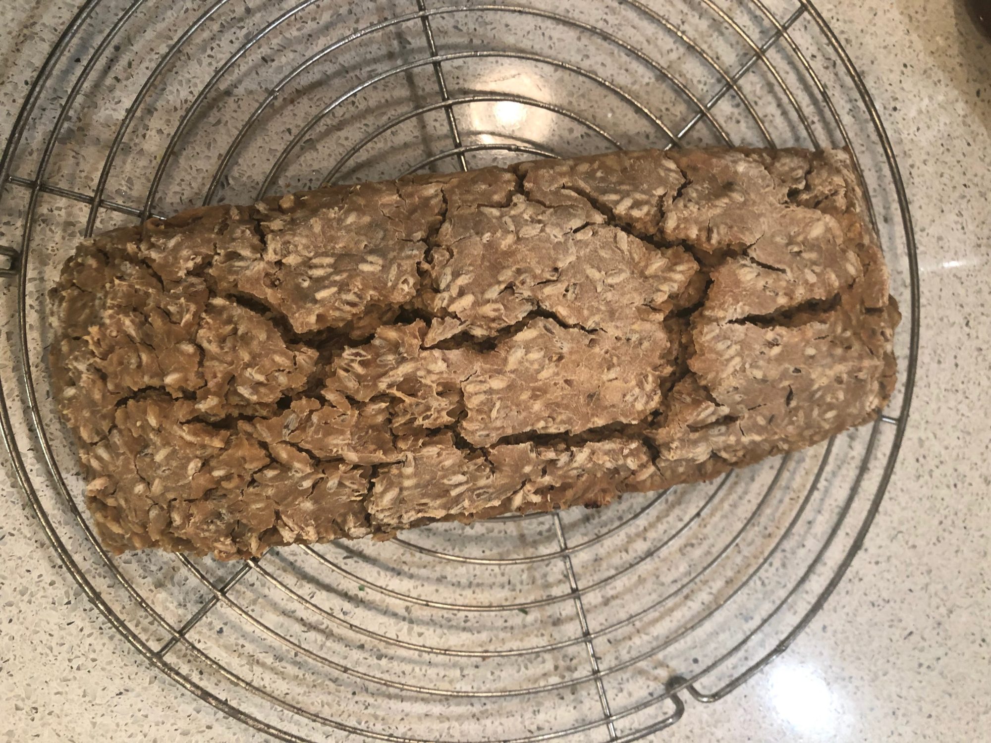 Take it out of the oven and leave to sit for at least 12 hours too set properly. The texture really isn’t right until it has sat for a while. The outside grains get really tough, so be careful with your teeth